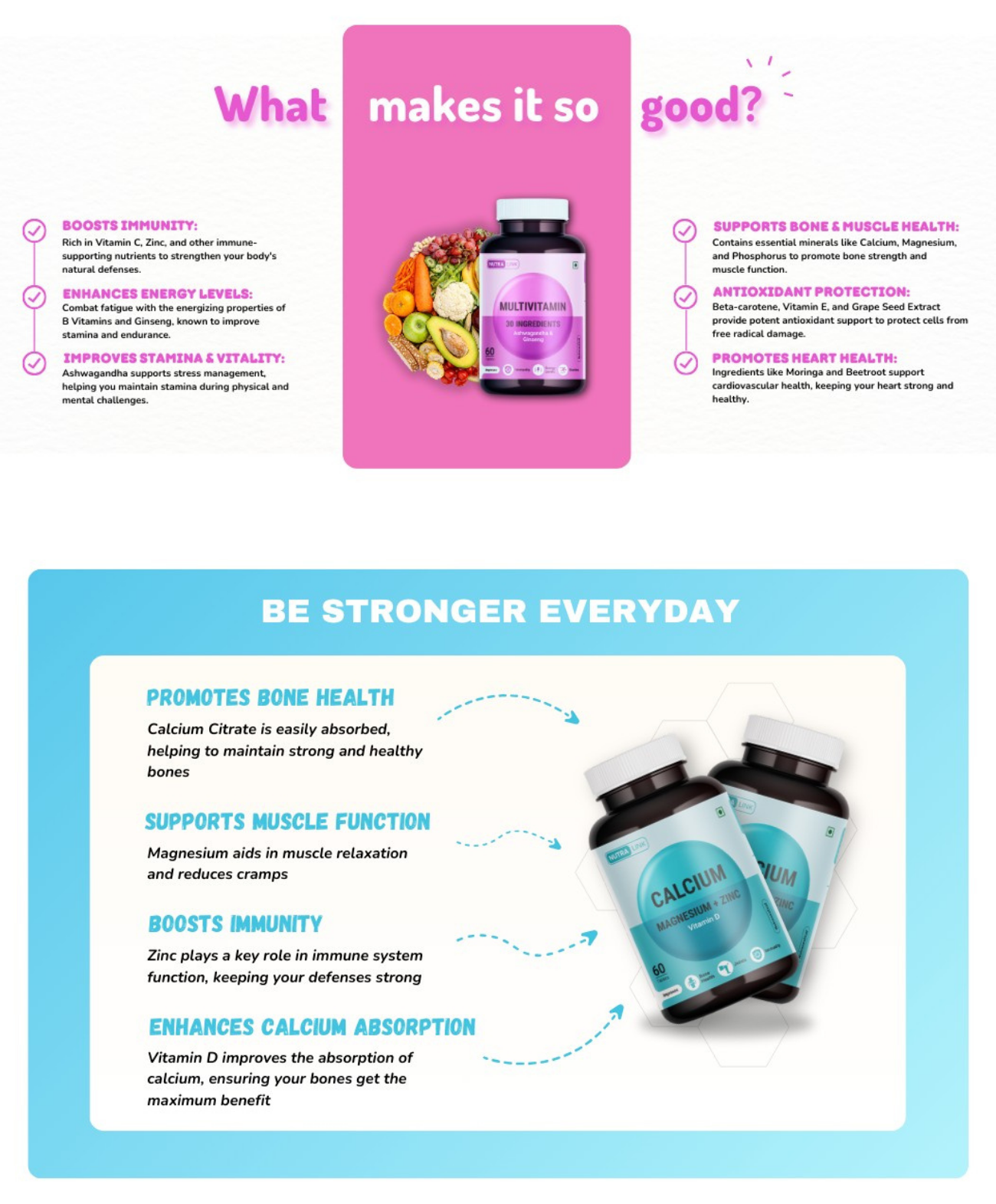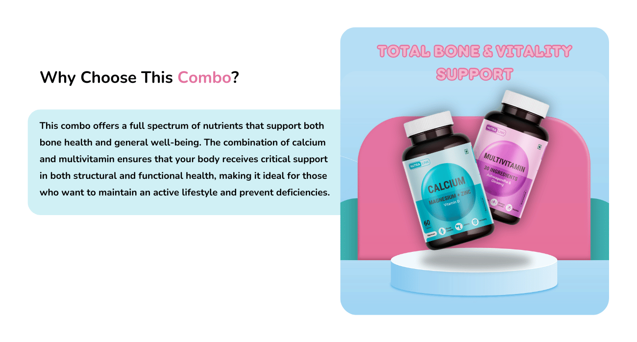 This combo is ideal for adults looking to support bone health, maintain high energy levels, and improve overall vitality. It’s especially useful for those with calcium deficiencies or those looking to prevent age-related bone loss.