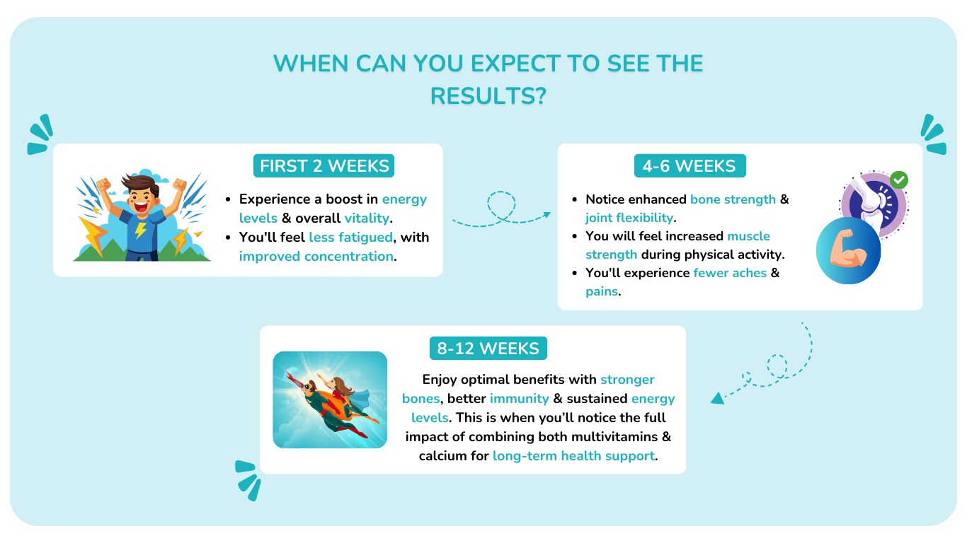 Yes, this combo is formulated for daily use. One tablet of calcium and one multivitamin per day provide the essential nutrients you need for balanced health. You can increase the dosage by 1 tablet each for more effective results, but always consult a healthcare professional before increasing the dosage.